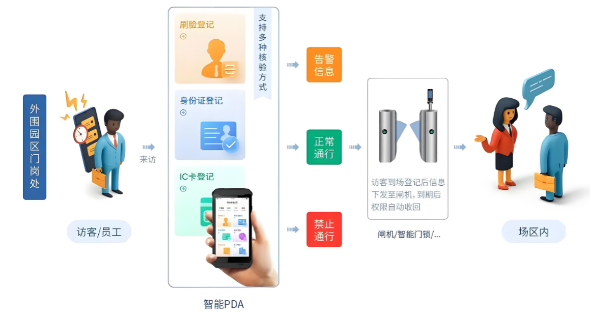 当前智慧工厂传统访客管理模式多依赖人工登记、门禁刷卡等方式,存在登记效率低下、身份核验不精准、访客轨迹无法追溯、外来人员管控松散等痛点,难以适配智慧工厂安防智能化、高效化的管理需求,给厂区人员安全、设备安全带来潜在风险。